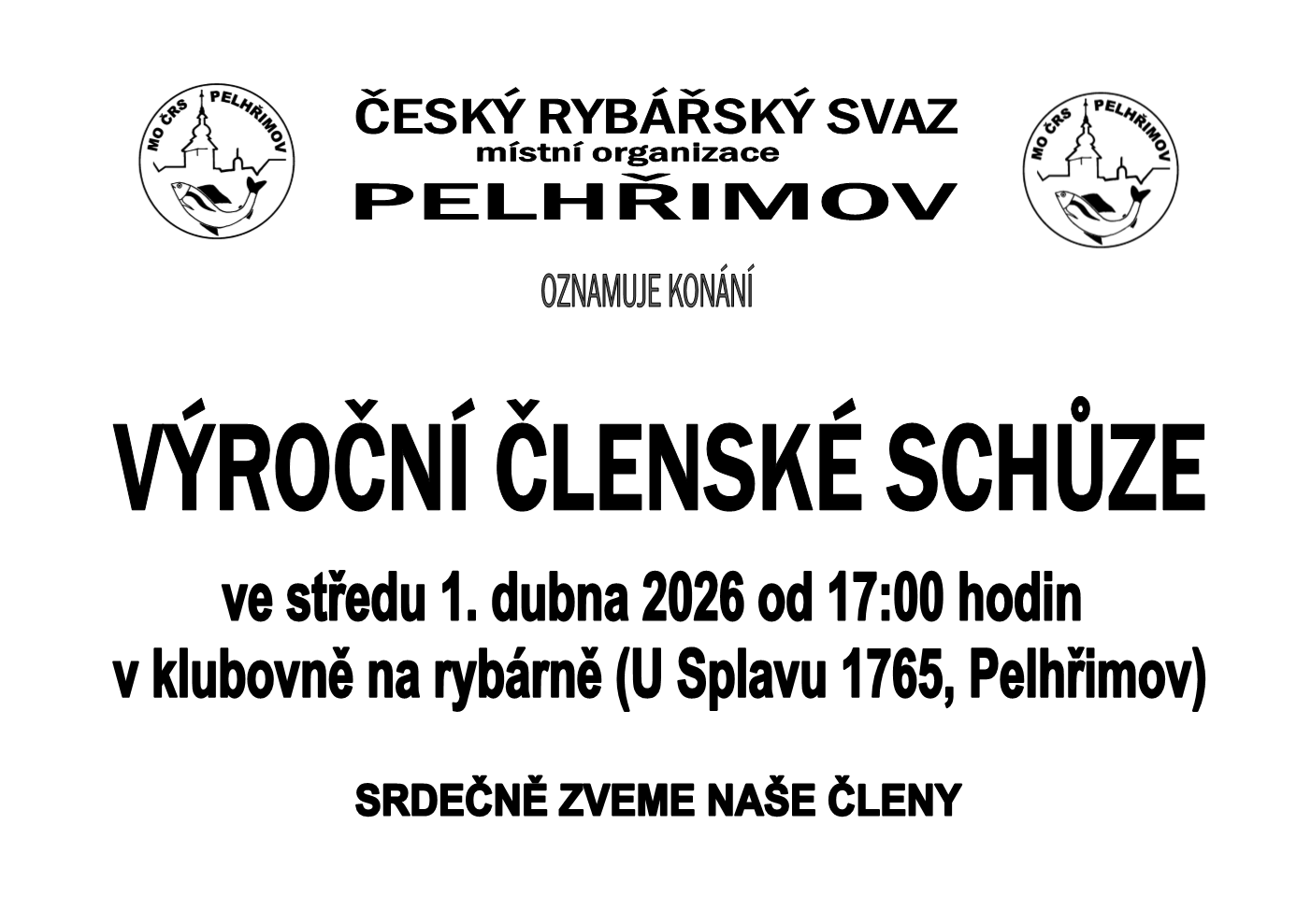 Oznamujeme všem členům, že výroční členská schůze se uskuteční